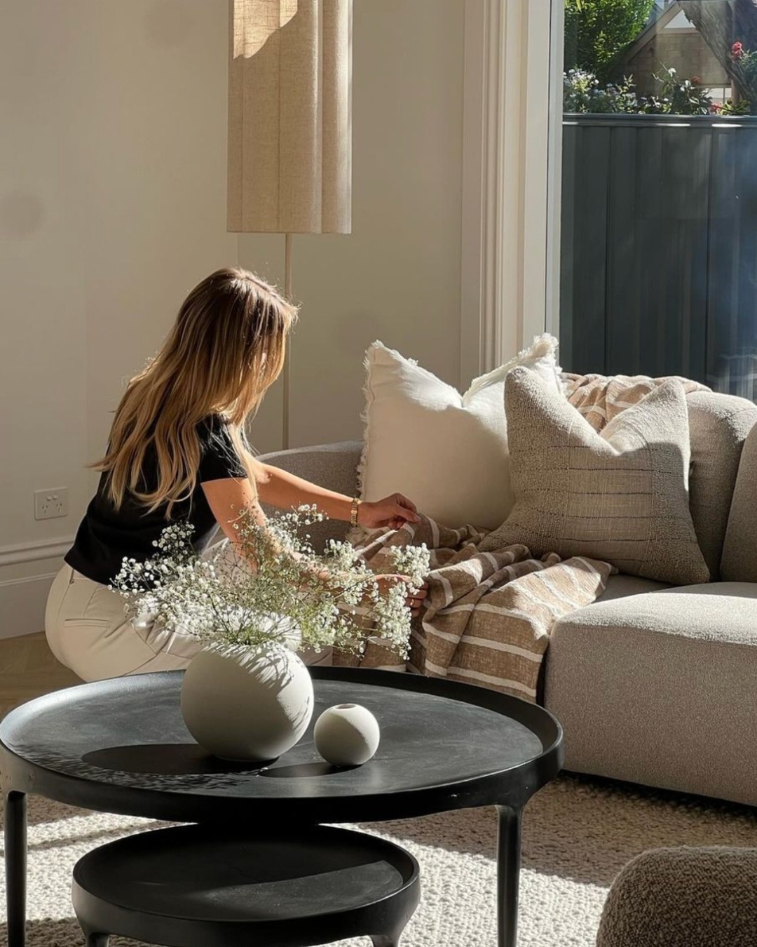 All about the details. Warm monochromatic tones in this beautiful Bungalow living room styled by @artdepartmentstyling ft, Sycamore Spray Natural.